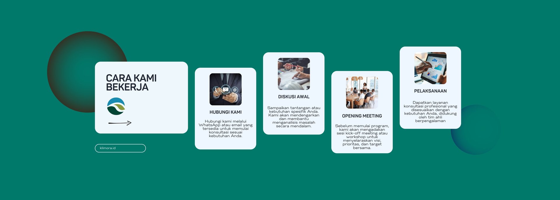 Klimora Sustain Indo berkomitmen menjadi partner terpercaya bagi pemerintah, BUMN, dan perusahaan swasta dalam menciptakan ekosistem bisnis yang berlandaskan prinsip keberlanjutan. Dengan pendekatan inovatif dan berfokus pada solusi berkelanjutan, Klimora mendukung pengelolaan sumber daya secara efisien serta pengembangan praktik bisnis yang bertanggung jawab terhadap lingkungan. Kami tidak hanya menyediakan layanan profesional, tetapi juga membangun kemitraan jangka panjang yang berorientasi pada pertumbuhan bersama dan dampak positif bagi masa depan